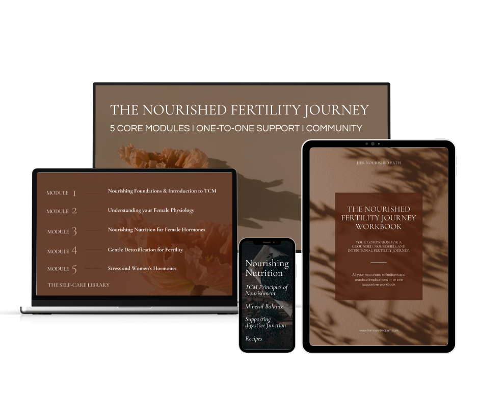 The Nourished Fertility Community — Along with the self-paced program and the intimate one-to-one sessions, you'll have access to a community of Women going through the same journey. You'll be able to ask questions, share what's on your heart and connect with other women on this journey. Something that can be so valuable when navigating through different life stages, health challenges and new insights.