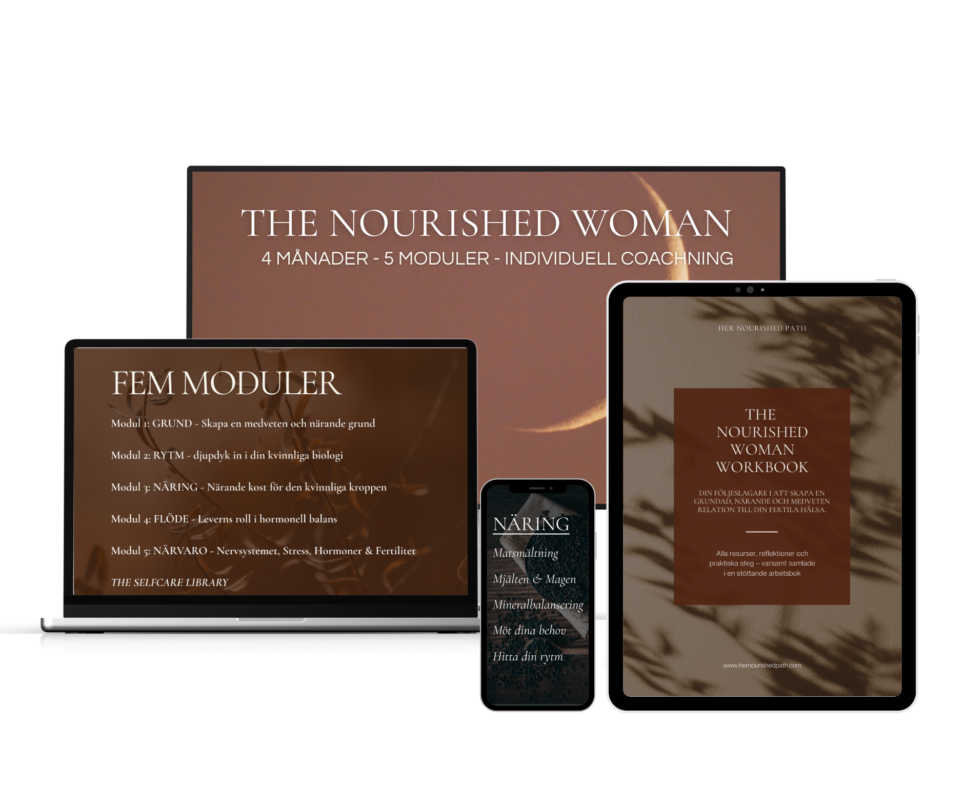 The NOURISHED WOMAN representerar vad Jag tror på och önskar att fler kvinnor har tillgång till; Ett program rotat i traditionell visdom, kombinerad med modern näringsterapi, yoga, kroppsmedvetenhet och fertilitetsfärståelse, där du samtidigt får stödet och den djupgående personliga anpassningen till kursmaterialet som du kan jobba igenom i egent tid och, ha tillgång till resten av livet.